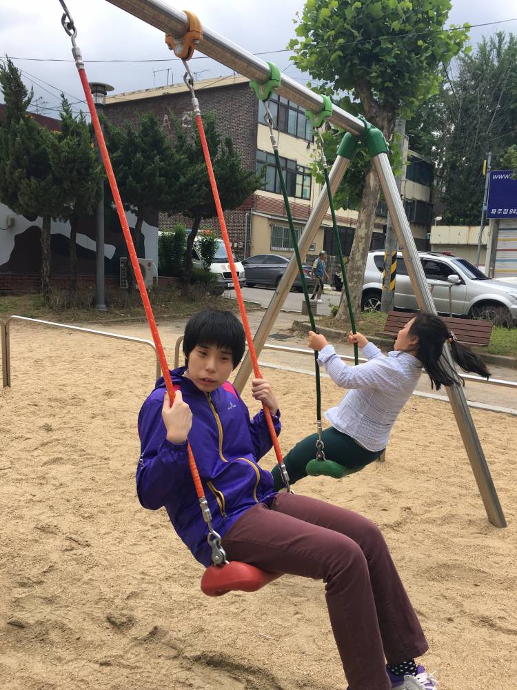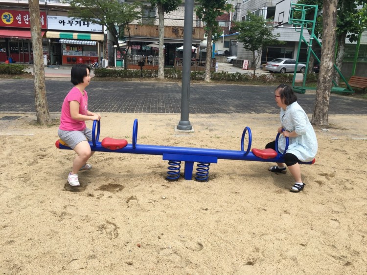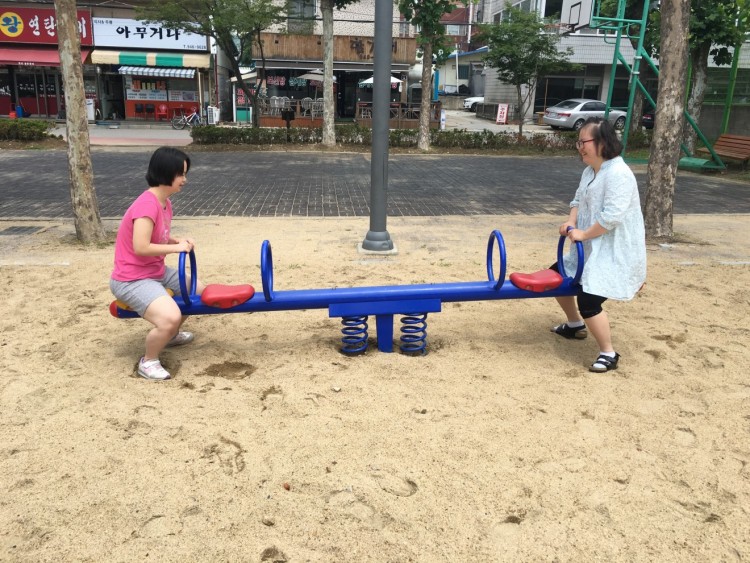 시소와 그네를 타며 스트레스를 푸는 시간을 가졌습니다.