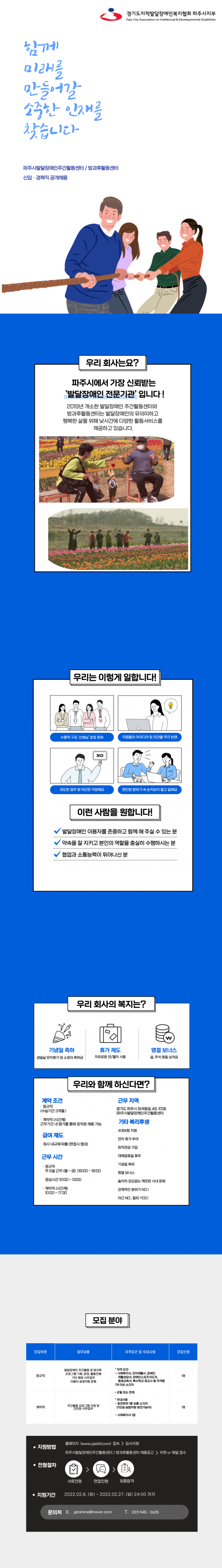[마감]2022년도 파주시발달장애인주간활동센터 직원채용(정규직/ 계약직)