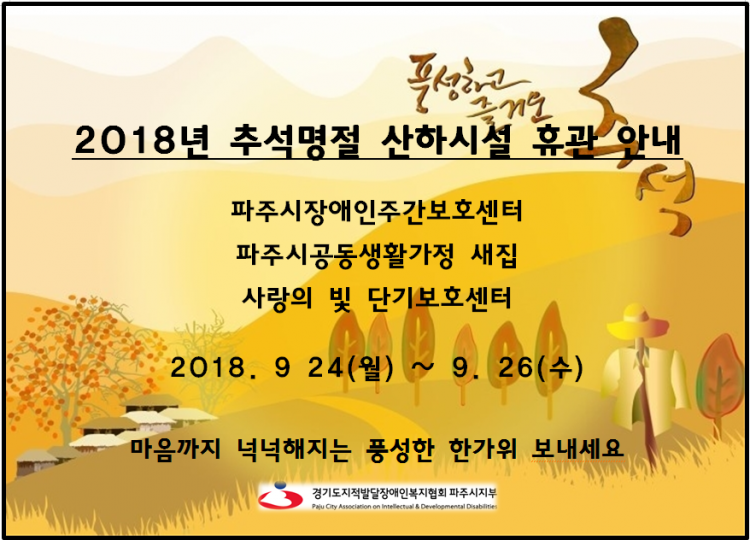 2018년 추석명절 지부 산하시설 휴관안내 > 공지사항