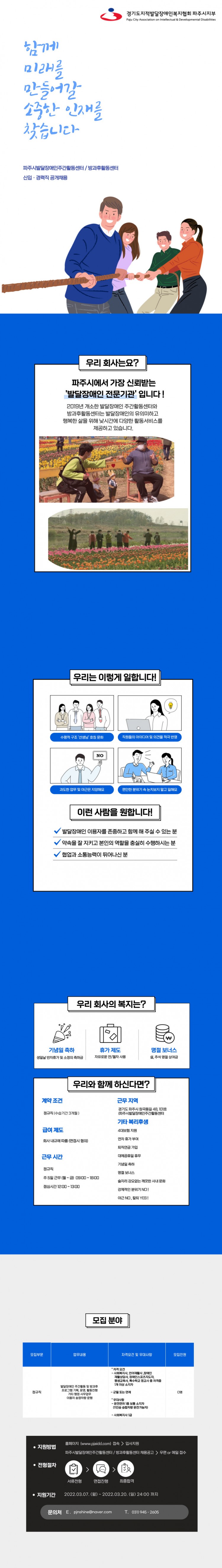 [마감]2022년도 파주시발달장애인주간활동센터 직원채용(정규직)